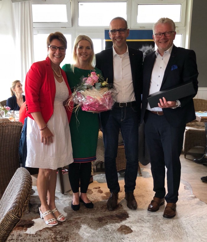 Nun übergab er das Amt an Michael Wietkamp, der für die nächsten 12 Monate der Präsident des Lions Clubs Emsdetten sein wird. Er bedankte sich bei Frank Wiesner für ein grandioses Jahr, und kündigte zugleich an, die bislang kürzeste Rede zur neuen Präsidentschaft zu halten, die es je bei den Lions gegeben habe. Und kaum ausgesprochen übergab er schon das Wort an Michael Kreft, als Vertreter des Haus Hannah, in dessen Zeichen Michel Wietkamp das neue Lions Jahr stellen wird.